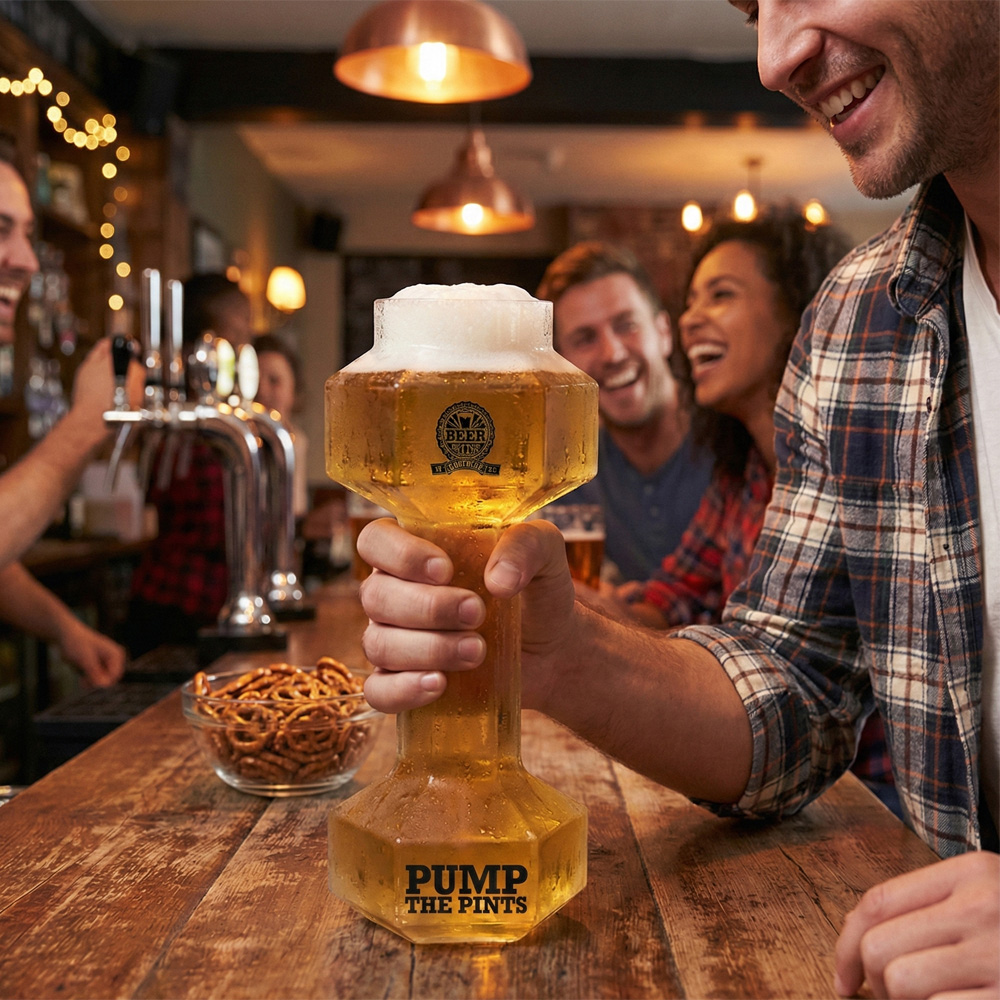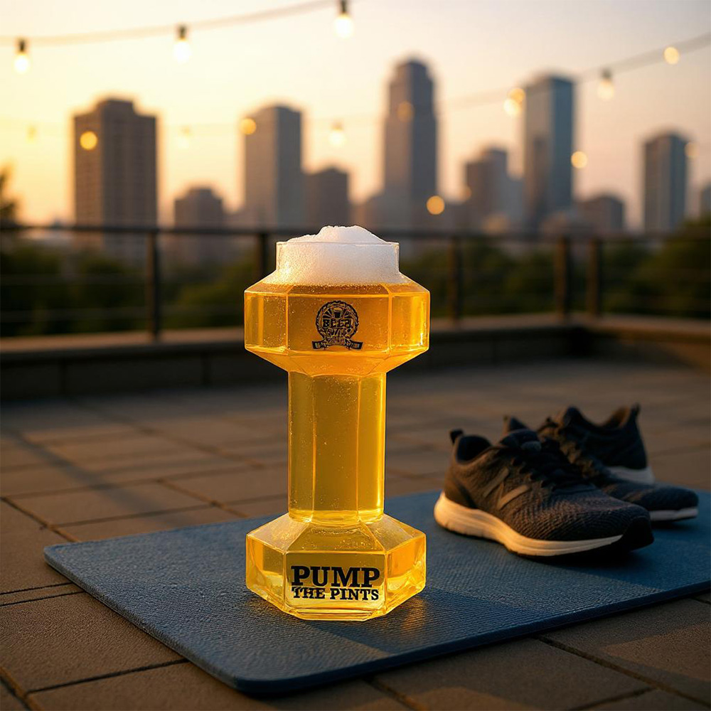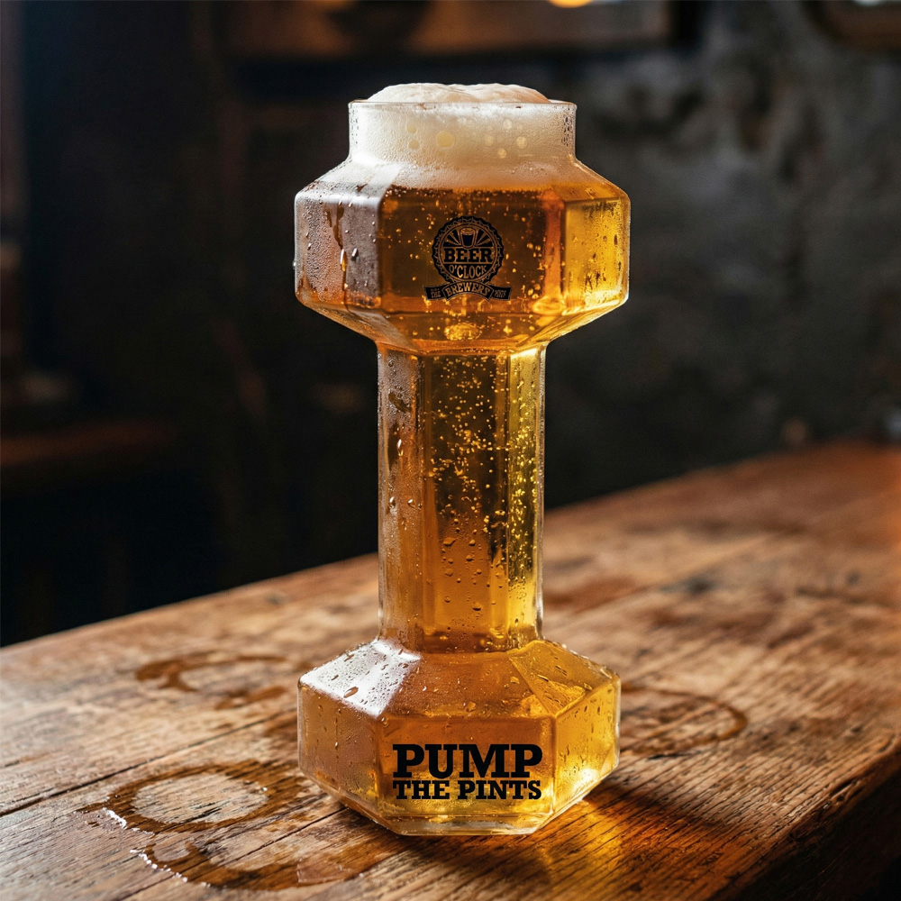 All you need to do now is fill up the Beer Dumbbell Glass with your choice of ale and raise a Dumbbell Glass!